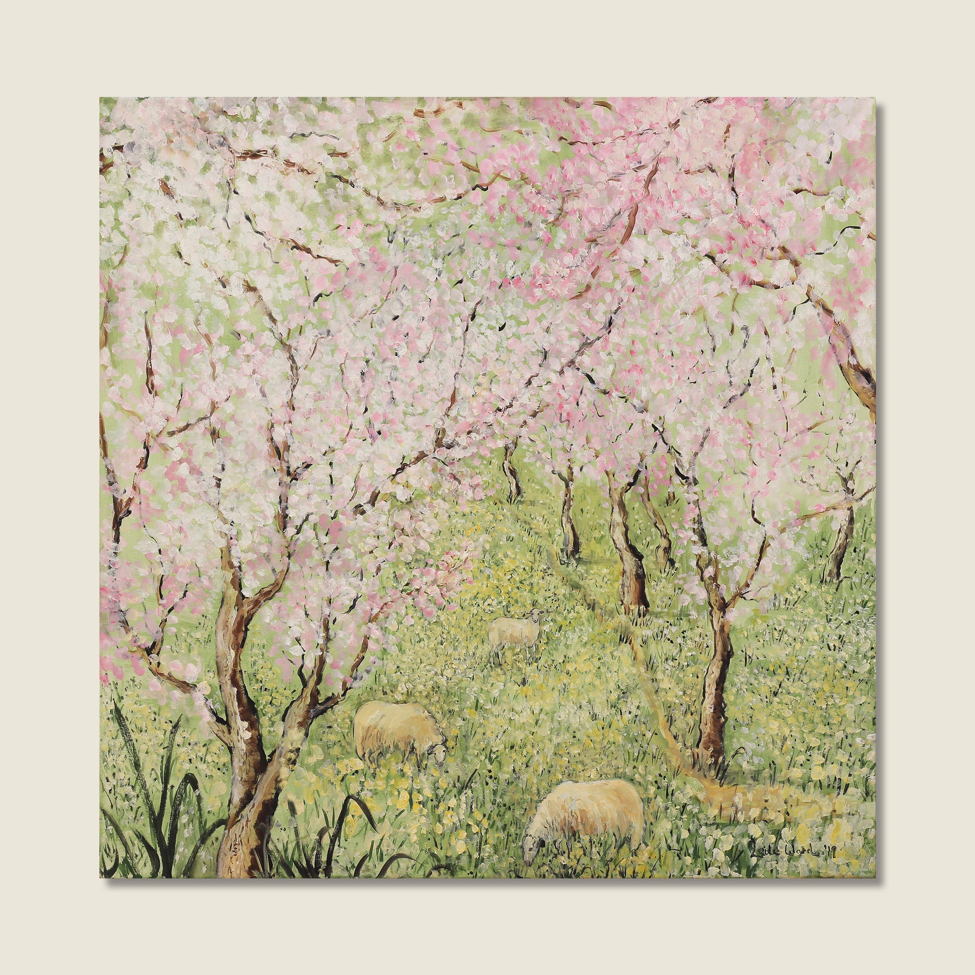 Almond trees in Blossom with Sheep